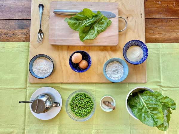 – greens (basil, chard, spinach, mixed herbs)