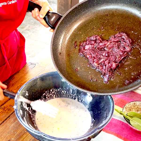 This savory pie is a dish prepared in no time, with a base of crispy pastry, sage and caramelized onions. I’ll teach how to make the pie crust from scratch, for which I use my reliable recipe with the addition of minced sage, for extra aroma.
